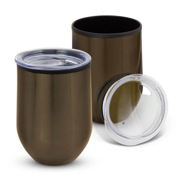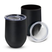 Smart 350ml BPA-free double wall coffee cup with a timeless curved design and a secure push on lid. It has a stainless steel outer wall and a polypropylene inner wall which keeps drinks hot for longer. Cordia has a soft non-marking base and laser engraves to a shiny steel finish except for the stainless steel cup, which engraves to a natural etch. This product is not dishwasher safe and handwashing is recommended. Colours: Stainless Steel, Gunmetal, Gloss White, Translucent Blue, Matt Black. Dimensions: Dia 83mm x H 125mm.