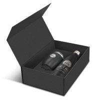 Stunning double wall, vacuum insulated stainless steel drinkware set which is beautifully presented in a natural or black gift box. The set includes a 500ml Mirage Powder Coated Vacuum Bottle and a 300ml Cordia Vacuum Cup which is also powder coated. Mirage has a secure screw-on stainless steel lid and will keep drinks cold for up to 24 hours and hot for up to 12 hours. Cordia has a transparent push-on lid with a sliding closure, and will keep drinks hot for up to three hours. Both items are BPA-free and laser engrave to a shiny steel finish, except for the silver bottle and cup, which do not have a powder coated finish and laser engrave to a natural etch. These products are not dishwasher safe and handwashing is recommended.