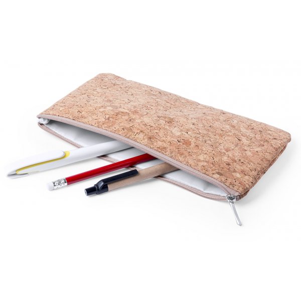 Trendy washable, eco friendly Nature Pencil Case in natural cork, matching colour zipper, chromed puller and inner lining in white. Colours: Natural. Dimensions: 23 x 11 x 2 cm.