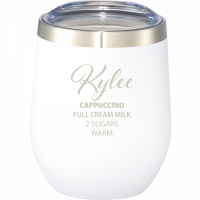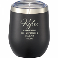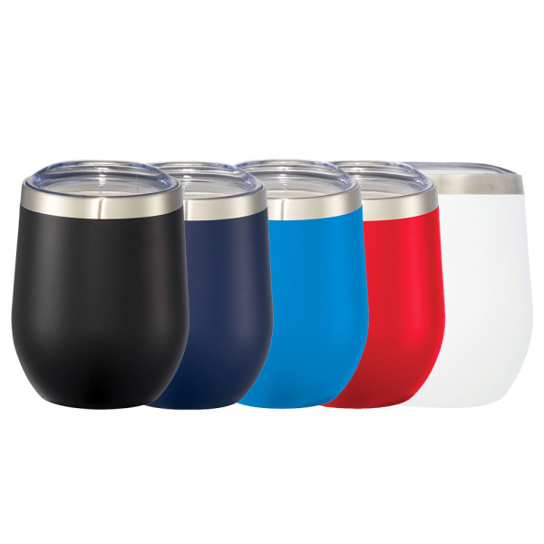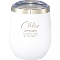Enjoy your drink at any moment! Durable, double-wall 18/18 stainless steel vacuum construction with copper insulation, which allows your beverage to stay cold for 24 hours and hot for at least 6 hours. The construction also prevents condensation on the outside of the tumbler. Perfect accessory for wine. Easy sipping, push-on lid. Wide opening for comfortable filling and pouring. Durable powder spray color. 350ml capacity. Colours: Black, Navy, Process Blue, Red, White. Dimensions: 88mm(w) x 113mm(h).