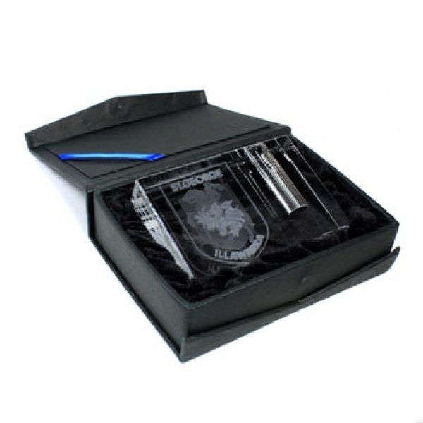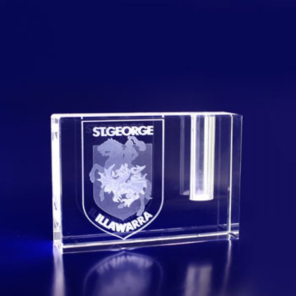 The crystal Pen Holder, Business Card Holder and Letter Opener are functional items that will take pride of place on the recipient's desk and used frequently, making them a perfect promotional item as well as a great corporate gift. Each crystal comes in its own quality gift box. The Pen Holder crystal has the same dimensions as our Flat Tower (RT10). It is great for brand promotion or as an award that is both unique and functional.