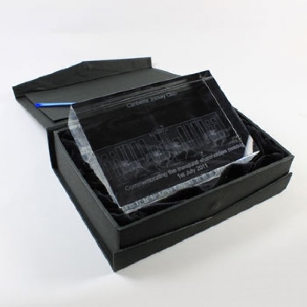 Another popular crystal. The depth is less than the Rectangle crystals, but the front surface area is greater. Thus, the Rectangle Thin crystals are a good choice for logos, text and 3D designs that do not require great depth. Our range of Thin Rectangle crystals are suitable for 2D artwork and photos or 3D models requiring less depth.