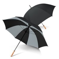 The classically designed PEROS Pro silver umbrella offers UPF50+ sun protection making it an outstanding choice for complete protection from the elements. It has a large eight-panel nylon canopy supported by 75cm fibreglass ribs. Other features include a black electroplated steel shaft, a Velcro tie and a wooden hand grip. Every PEROS umbrella includes a 1-year manufacturers warranty. Wood is a natural material that produces unavoidable variances in the grain pattern and colour. Colours: Silver, Black/Silver. Dimensions: dia 1320mm (Open) x L 1030mm (Includes Handle).