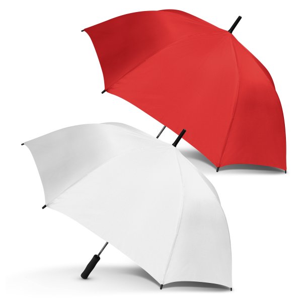 The affordable PEROS Wedge umbrella certainly doesnt compromise on quality. The extra-large eight panel, vented canopy is manufactured from polyester and is supported with 59cm fibreglass ribs. Other features include automatic opening, a strong fibreglass shaft, a Velcro tie, plastic tips, and a soft EVA hand grip. Every PEROS umbrella includes a 1-year manufacturers warranty. Colours: Red, White. Dimensions: Dia 1020mm (Open) x L 830mm (Includes Handle).