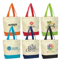 Classic two-tone tote bag which is manufactured from 285gsm natural unbleached cotton canvas with coloured trim. It has an internal slip pocket, a base gusset for added capacity and long carry handles. Colours: Orange/Natural, Red/Natural, Bright Green/Natural, Light Blue/Natural, Royal Blue/Natural, Black/Natural. Dimensions: H 410mm x W 448mm (excludes handles). Handle Length: 585mm.