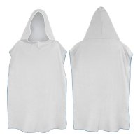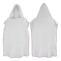 Adult size hooded towel which is ideal for staying warm and dry after swimming or at the beach. It is manufactured from soft 250gsm microfibre and can be branded on one side with edge-to-edge full colour print. There is a choice of eight overlocking thread colours. A production lead time of 20 working days applies to this product by air freight and larger orders can be sea freighted on request to reduce the freight cost. Colours: White Towel. Overlocking - White, Grey, Red, Green, Light Blue, Royal Blue, Purple, Black. Dimensions: W 780mm x H 1090mm (when worn, excludes hood).
