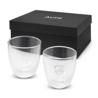 Exquisite set of two 310ml double wall glasses which are presented in a black gift box. They are manufactured from borosilicate glass which is incredibly light and very strong. The double wall construction keeps drinks hot for longer while the outside of the glass remains comfortable to hold and it keeps drinks cold without messy condensation. They are ideal for use as on-trend coffee cups or for serving icy cold beverages. Tivoli glasses are also great for frozen desserts which need to stay frozen for as long as possible. This product is not dishwasher safe and handwashing is recommended. Colours: Clear. Dimensions: Glass: Dia 90mm x H 96mm; Gift Box:W 145mm x L 242mm x 100mm.