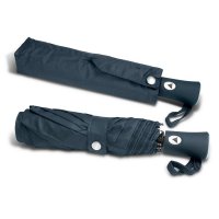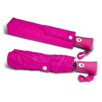 Stay dry in style with the compact, three-stage PEROS Vienna folding umbrella which has automatic opening and closing. It has an eight-panel pongee canopy with 54cm aluminium and fibreglass ribs. Other features include a steel shaft and a wide Velcro tie with a decorative dome. The rubberised hand grip, pongee sleeve and woven carry strap all match the canopy colour. Every PEROS umbrella includes a 1-year manufacturers warranty. Colours: Black, Fuchsia, Navy. Dimensions: Dia 1000mm (Open) x L 310mm (includes handle).
