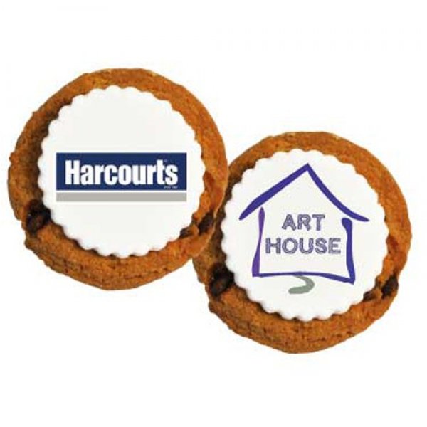 Custom Printed Chocolate chip cookie with a custom printed fondant disk.