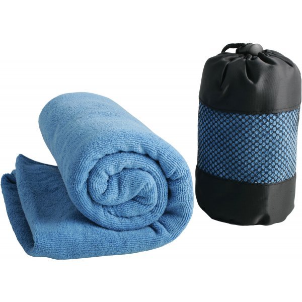 Wipe away sweat after a tough workout using soft microfibre sports custom towels that arrive with their own mesh carrying case. This product is quick drying with high density absorbency. Colours: Blue. Dimensions: Pouch 120 x 70mm; Towel 600 x 1200m.