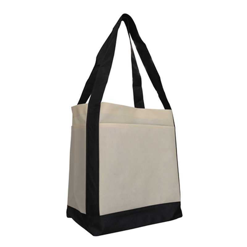 Use 90 gsm polypropylene material to make the bag more durable and stronger. 2 handles extend to the bottom with size approx. 65 cm L x 3.5 cm W. Front pouch and side pouches. Print with special environmental friendly water-based ink. Colours: Black, Navy Blue, Red. Dimensions: 270 mm x 305 mm x 175 mm.