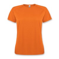 Extremely lightweight 140gsm cut and sewn women’s sports t-shirt with raglan sleeves. It is manufactured from moisture wicking polyester mesh which is breathable, fast-drying and perfect for dry fit activewear. Binding on the collar and arms add strength and structure to the garment. The t-shirt is a European fit and is available in seven sizes. Colours: Grey, White, Orange, Red, Apple Green, Aqua, Royal, French Navy, Black.