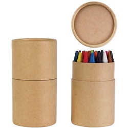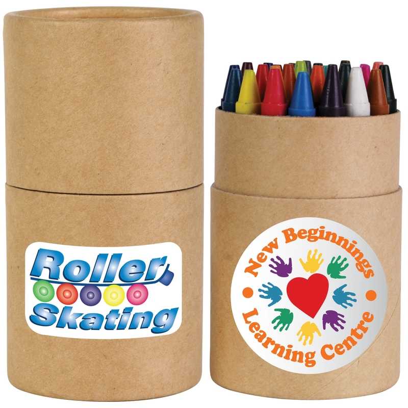 30 assorted non toxic crayons in unbleached cardboard tube. Dimensions: 107mmH x 57mm Diameter.