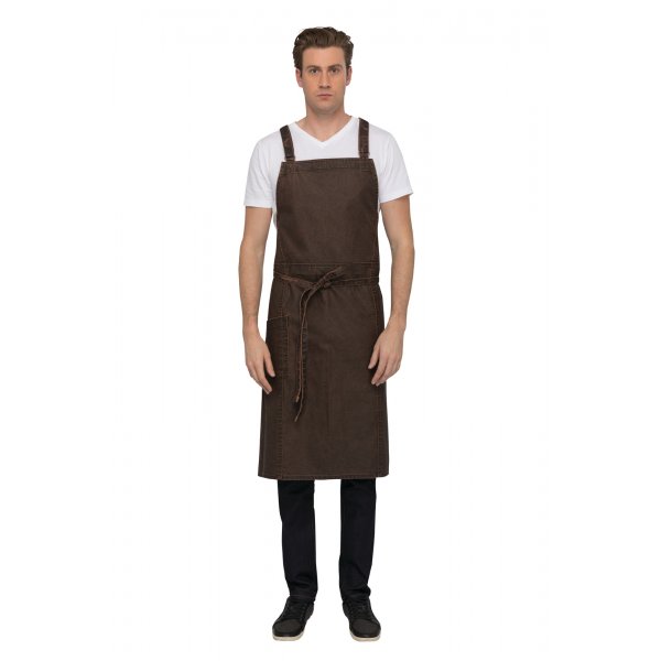 Cut longer and wider than our traditional bib aprons, our Denver Chef’s Bib Apron is made from 100% cotton and offered in two unique colors with artisan finishes. With adjustable cross-back straps that connect in back, the Denver alleviates stress from the neck and prevents apron bunching, so chefs are well equipped to forge their own path in the kitchen. A right-hand cell phone pocket features riveted ends, while reinforced stressed points and double-needle stitching round out this exec-level ensemble. Dimensions: 86cm L x 76cm W .