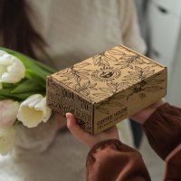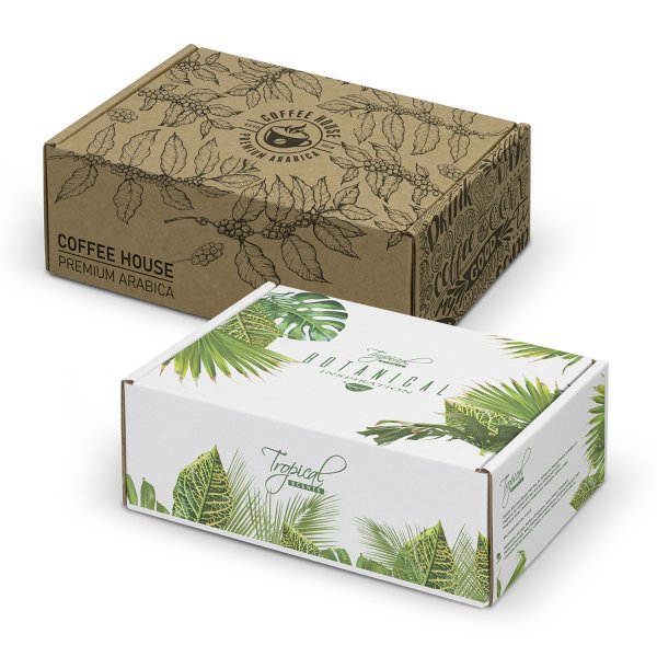 Professional custom presentation box made from durable 1.5mm e-flute corrugated cardboard to provide reliable protection during transit. This box is perfect for gifting and building strong brand recognition. Featuring a convenient hinged lid, all panels of the box can be customised with CMYK digital print. It is supplied flat-packed for easy postage and storage, and its self-locking design ensures hassle-free assembly. The assembled internal dimensions are 175mm x 130mm x 65mm (LxWxH). Colours: Natural, White/Natural. Dimensions: Assembled Internal: L 175mm x W 130mm x 65mm.