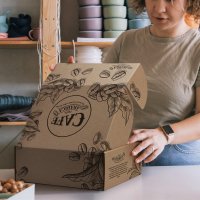 Professional custom presentation box made from durable 1.5mm e-flute corrugated cardboard to provide reliable protection during transit. This box is perfect for gifting and building strong brand recognition. Featuring a convenient hinged lid, all panels of the box can be customised with CMYK digital print. It is supplied flat-packed for easy postage and storage, and its self-locking design ensures hassle-free assembly. The assembled internal dimensions are 300mm x 225mm x 113mm (LxWxH). Colours: Natural, White/Natural. Dimensions: Assembled Internal: L 300mm x W 225mm x 113mm.