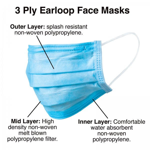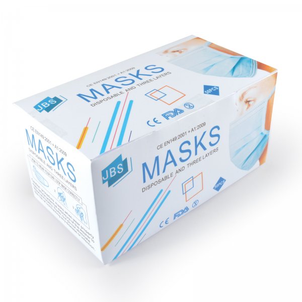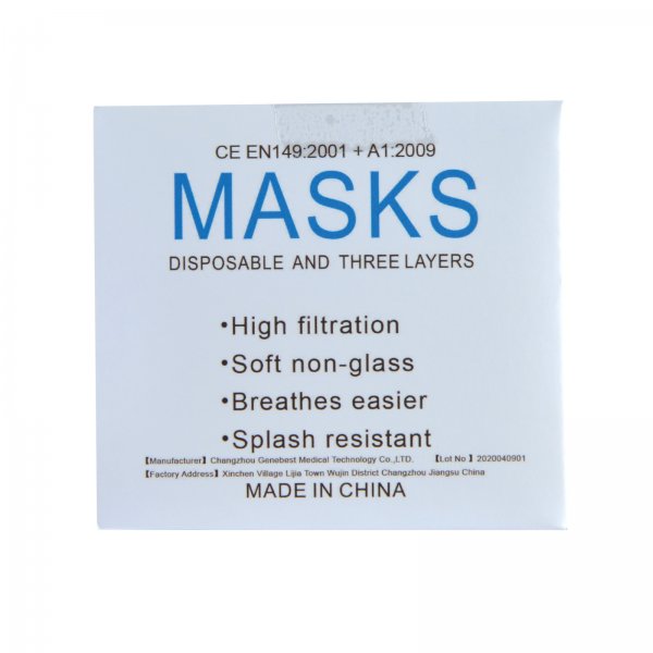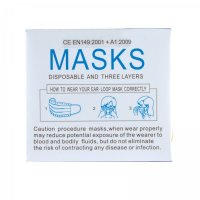 Disposable 3-layer face mask suitable for home, occupational and recreational use. These comfortable fitting masks are securely held in place with 2 elastic ear straps and have a flexible insert that bends to the shape of your nose bridge. The triple layers provide excellent filtration; the two outer layers are non-woven polypropylene and the inner layer is melt blown non-woven fabric. Made to CE EN149:2001 + A1:2009 standards they'll filter out up to 94% of airborne respiratory particles, both solid particles and liquid droplets when correctly fitted in accordance with the supplied fitting instructions. Note these are not medical grade devices and cannot be used for medical procedures. Colours: blue/white. Dimensions: 175L x 95H (mm). Download E-Flyer Information Sheet here