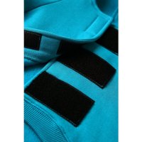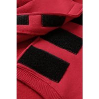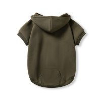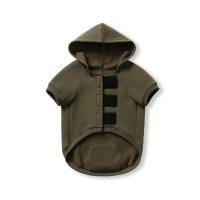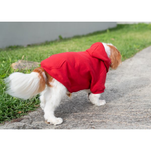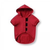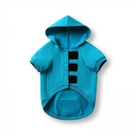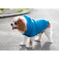 Dog in the photo is our king charles cavalier. He is 9kg wearing a size medium. The back of the hoodie features an opening secured with Velcro, allowing it to wrap around and fasten under the dog's belly with adjustable support. Colours: Azure, Black, Olive, Red. Sizes: XS, S, M, L, XL, 2XL.