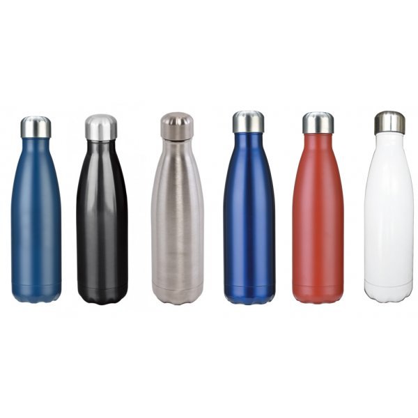 500ml Stainless steel double wall vacuum insulated keep hot and cold up to 12 hours (304# stainless steel inside and outside, copper plated inside insulation), BPA FREE. Individually packed in white biodegradable box. Colours: Matt Black, Silver, White, Navy, Royal, Red. Dimensions: 260 mm x 72 mm.