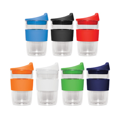 Item Features: Double walled design keeps hot drinks hot without burning your fingers|Colourful lid and sleeve|300mL capacity|Can be used with or without the lid, in the car or in the office