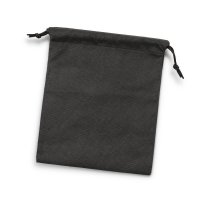 Medium-size drawstring gift bag that is manufactured from 80gsm non-woven polypropylene material. Colours: Black, White. Dimensions: H 253mm x W 215mm.