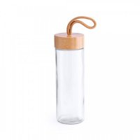 Nature line, 420ml capacity bottle. In combination of a glass body material and screw-on bamboo lid, with carrying handle in natural color. Presented in an individual, eco design box. Colours: Natural. Dimensions: 19 x 6.3 cm.