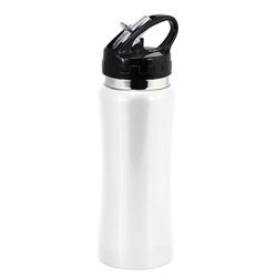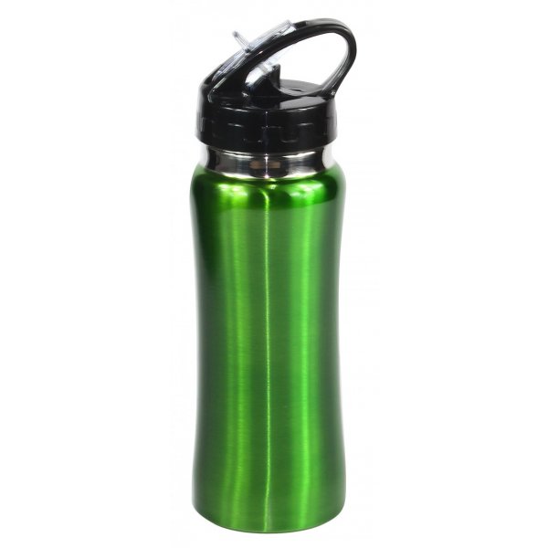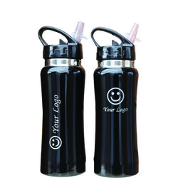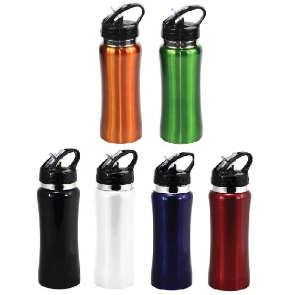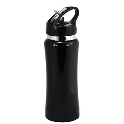 Stainless Steel Drink Bottles with Straws, BPA FREE, 560ml. Colours: Black, Blue, Green, Orange, Red, White. Dimensions: 235 mm x 70 mm.