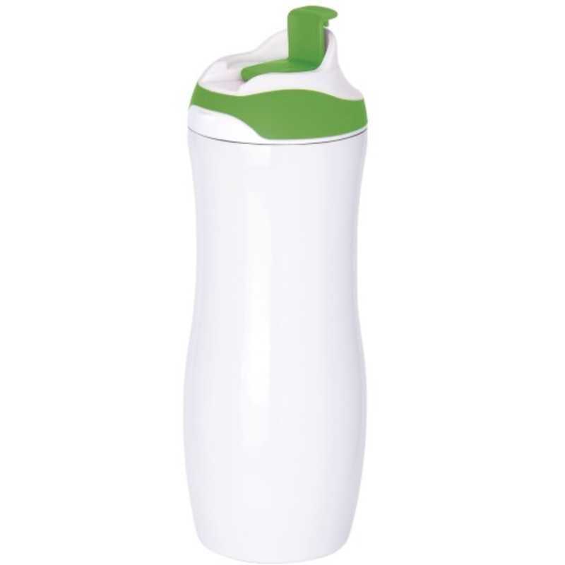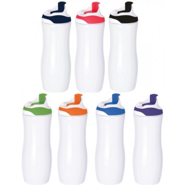Premium High Grade Stainless Steel Thermo Bottle Deluxe, patented, double wall, high grade stainless steel inside, suitale for hot and cold drink, high impact abs lid, TPR wraping, 100% air tight, leak proof and spill proof. BPA FREE, 400 ml. Colours: Black, Green, Navy, Orange, Purple, Red, Royal Blue. Dimensions: 215 mm X 73 mm.