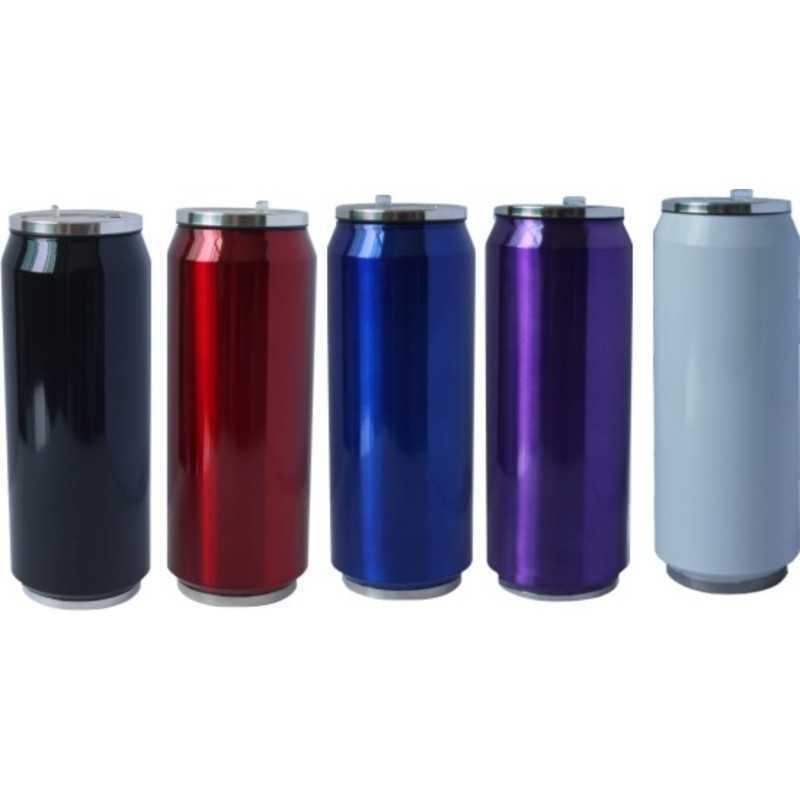 JM022L Double Wall Thermal Can. BPA FREE, 500ml (inside & outside high grade stainless steel), keep hot and cold to 6 hours, leak proof and spill proof. Colours: Red, Black, White, Blue, Purple