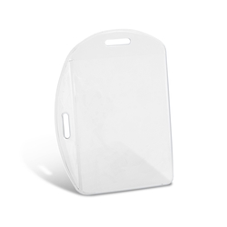 Unique multi directional vinyl holder for credit card sized plastic ID cards. It is designed to accommodate ID cards which are printed both vertically or horizontally. Duet can be supplied with an optional lanyard or badge holder.