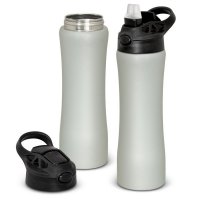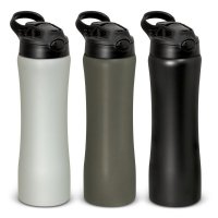 Sophisticated 800ml stainless steel drink bottle with a lacquered matt finish and a contoured design that ensures it is comfortable to hold for hands of all sizes. It has a secure screw on lid with a carry handle and a push-button activated drinking straw that locks away when not in use to protect it from dust and dirt. Duke is BPA-free and laser engraves to a shiny steel finish. This product is not dishwasher safe and handwashing is recommended. Colours: Silver, Charcoal, Black. Dimensions: Dia 74mm x H 280mm.