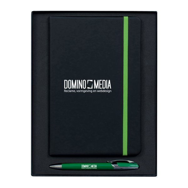 Set comprises of D422 A5 Journal notebook F144 Havana pen in a black gift box Colour/s: Blue, Red, Green, Orange Dimension: 255mm H x 195mm W.