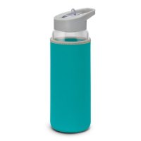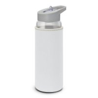 Stylish 700ml borosilicate glass drink bottle which has a soft, insulating neoprene sleeve that keeps drinks cool for longer. Elixir has a secure screw on lid with a carry handle and a flip out drinking valve with a straw. Borosilicate is a lightweight glass that is exceptionally strong and shatter-resistant. It is a natural BPA-free choice for a clean, pure taste and it is a safe alternative to single-use plastics. Elixir is not intended to be used with carbonated or hot liquids. This product is not dishwasher safe and handwashing is recommended. Presented in white minimalist box. Colours: Bottle: Clear. Sleeve: White, Yellow, Red, Light Blue, Dark Blue, Navy, Purple, Black. Dimensions: Bottle: Dia 70mm x H 245mm. Gift Box: W 80mm x L 80mm x H 250mm.