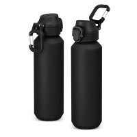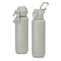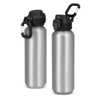 Extremely lightweight, BPA free, 600ml drink bottle made from recycled aluminium. It features a push-button cap with a secure lock mechanism and a built-in colour-matched carabiner for easy carrying or attachment to a bag. It is the perfect companion for work, travel, or outdoor adventures - practical and stylish. Colours: Silver, Stone, White, Orange, Teal, Navy, Charcoal, Black. Dimensions: Dia 66mm x H 238mm x 73mm.