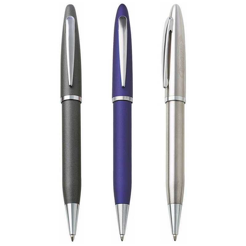 Twist action matt coloured barrel with gloss silver trim. Black ink refill. Colour/s: Blue,Black,Gloss Silver,Gunmetal,Stainless Steel.