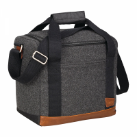 Inspiration was drawn from retro camping and old school scout looks combined with modern needs. This cooler combines the stylisation of a wool/poly material and vinyl accents with the function of an insulated cooler with bottle divider. Colours: Charcoal, Grey. Dimensions: 305mm(w) x 279mm(h) x 177mm(d).