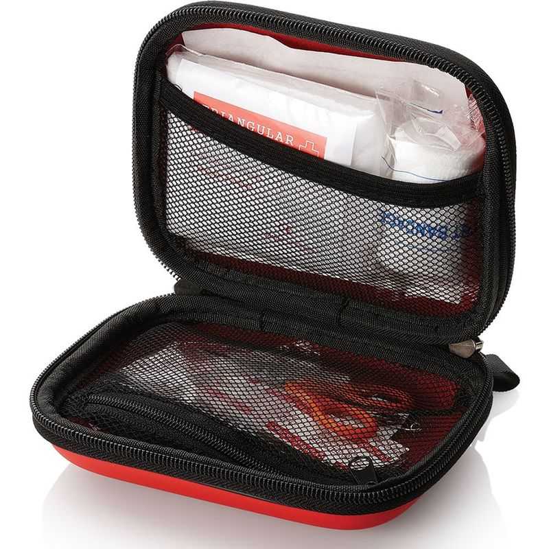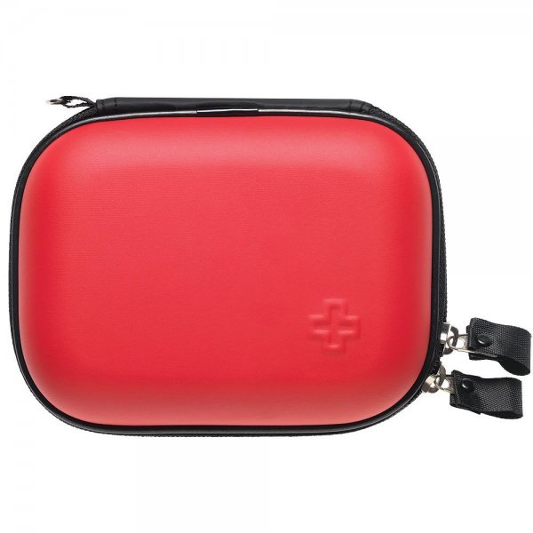 16 piece first aid kit, conveniently packed in a red zippered case