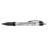 Retractable plastic ballpoint pen with a spring-loaded banner which can be branded in full colour on both sides. The pen has a soft rubber grip, translucent trim, and 1200m of German manufactured Dokumental ink. The refill is available in blue or black ink. A production lead time of 40 working days applies to this product by air freight and larger orders can be sea freighted on request to reduce the freight cost. Colours: Yellow, Orange, Red, Bright Green, Blue, Purple, Black. Dimensions: dia 13mm x L 146mm x 16.5mm (includes clip).