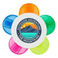 This flower shaped highlighter boasts five vibrant colour points each adorned with a coloured transparent plastic cap. Ideal for various highlighting needs the ergonomic design ensures a comfortable grip. Perfect for professionals and students alike this unique highlighter adds a touch of nature-inspired charm to your desk. Imprint your logo for a personalized touch and let your brand bloom with this functional and visually captivating promotional highlighter that combines style with versatility in a delightful bouquet of colours! Colours: White. Dimensions: 98mmW x 98mmH x 20mmD.