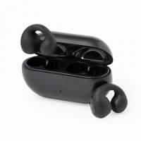 Open ear headphones with Bluetooth® 5.3 connection and hands-free function. Designed to fit perfectly in the ears using a handy clip, offering a comfortable listening experience. Touch control button integrated in the earpiece, with matching charging base and 200 mAh battery, Type C connection, and charging cable included. Presented in an individual kraft design box, with instruction manual in English and Spanish.Manufactured according to RoHS standards and in compliance with the following safety requirements: Overheating protection system. Over-charge protection system. Blocking system to prevent short circuits. Colours: Black, White. Dimensions: 2.4 x 6.9 x 2.4 cm | 31g.