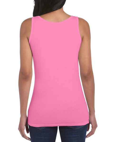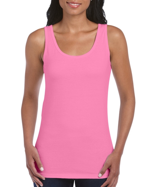 Rib knit trim applied to neckline and armholes, Wide Straps, Double needle bottom hem, Fitted silhouette with side seam, High stitch density for smoother printing surface, 3.8cm straps for LS-LL, 4.4cm straps for LXL-L2XL, Tear away label.
