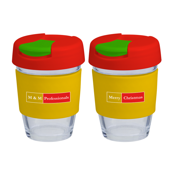 Reusable Eco Cup Glass Karma Kup Christmas with Flip Closure (G1800) 8oz/235ml