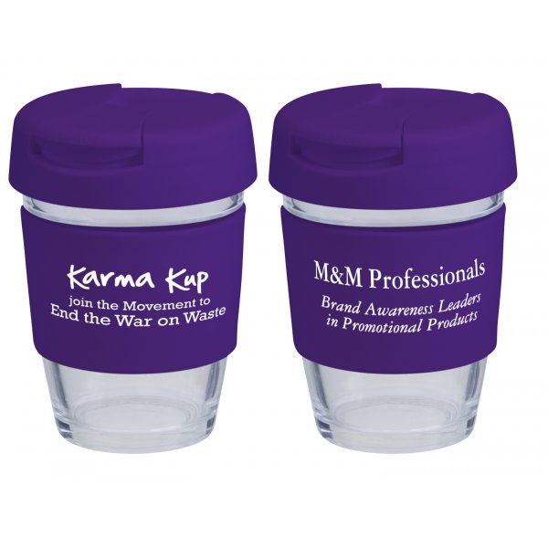 Reusable Eco Cup Glass Karma Kup Purple with Flip Closure (G1800) 8oz/235ml