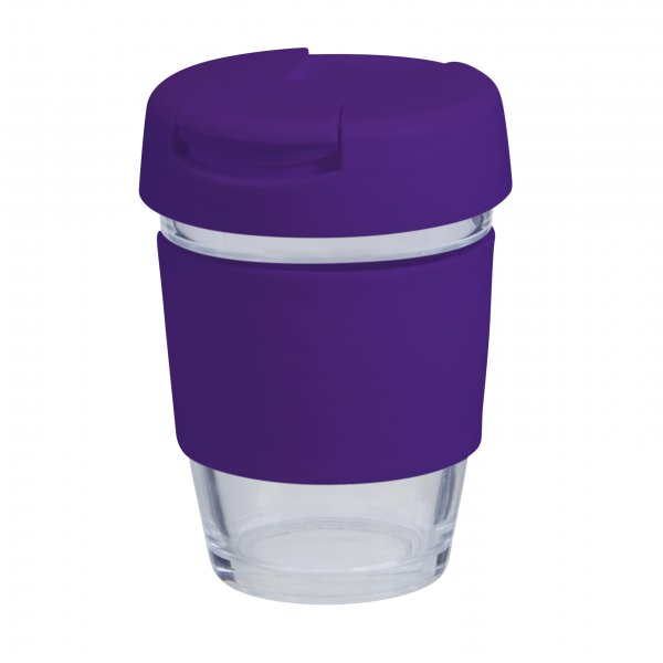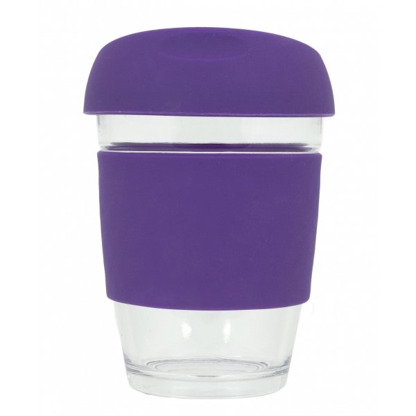 Reusable Eco Cup Glass Karma Coffee Kup Purple (G1799S) 12oz/340ml