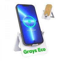 With its foldable A-Frame design, the Grays Eco 15W wireless charger provides dual coils for fast charging your phone, vertically or horizontally, while working in the office or watching your favourite movie and providing Foreign Object Detection, Over-Current and Dynamic Power Limiting protection. Compatible with any smartphone or device meeting the Qi wireless charging standard (5W, iPhone up to 7.5W, Samsung up to 15W). Includes Type-C charge cable and user manual. Please note for optimum performance, please use this charger with a Quick Charge 3.0 wall charger. Colours: Natural/White. Dimensions: 90 x 150 x 20 mm (folded flat), 90 x 135 x 88 mm (standing).