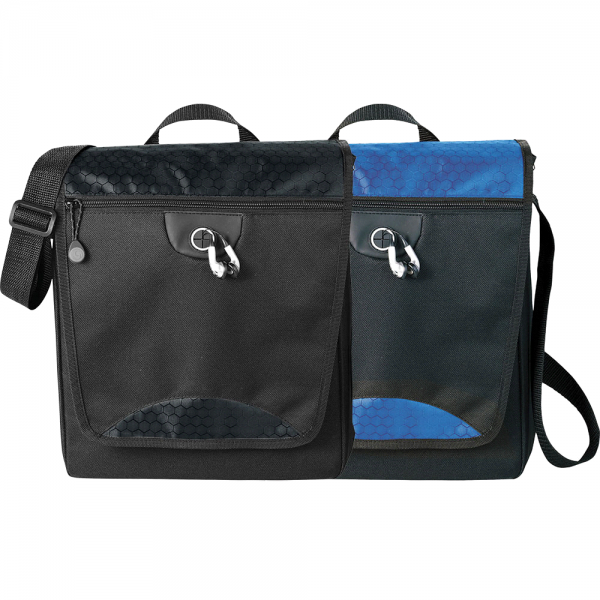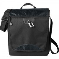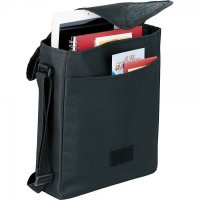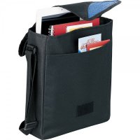 Main compartment is padded for your tablet or iPad. Large enough to fit your folders or catalogues in addition to your tablet. Supplied with business card pocket stitched on bag. Front zippered pocket offers additional storage. Adjustable shoulder strap. Colours: Black, Blue. Dimensions: 330mm(h) x 254mm(w) x 76mm(d).