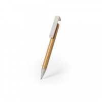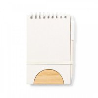 Nature line notebook convertible into a smartphone holder and made from recycled milk cartons. Hard cover with bamboo detail on the front cover and matching elastic band, including pen holder. Inside with 80 sheets of single-stripe layout and the distinctive of recycled milk cartons on back cover. Including ball pen made from recycled milk cartons with white fittings, push-button mechanism and blue ink. With the distinctive of recycled milk cartons logo on the top of the ball pen. Hard Cover. 80 Sheets. Pen Included. Colours: Natural. Dimensions: 8.8 x 14.7 x 1.7cm, 103 grams