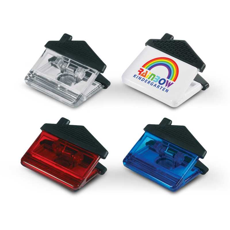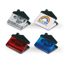 House-shaped clip with a strong magnet which will securely hold documents or notes on a fridge or any metal surface. Colours: White. Dimension: W 73mm x L 65mm x 36mm.