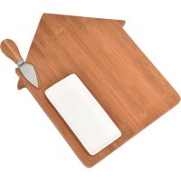 Made from ‘eco-friendly’ bamboo, this stylish cheese board is crafted in the shape of a house. Combining the practicalities of a cheese board, with an included ceramic bowl and cheese knife, House of Cheese is guaranteed to make a statement. Because of the unique nature of bamboo, the product and engraving colour may vary from item to item. Product packaging: natural colour gift box. Colour: Natural. Dimensions: 31cm high x 26.5cm wide x 1.5cm thick.