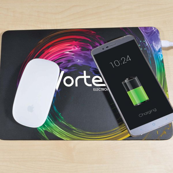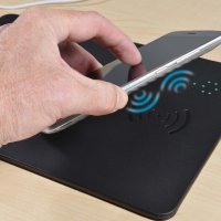 - Hi-tech PU mouse mat with built in wireless charging feature compatible with phones that offer wireless charging